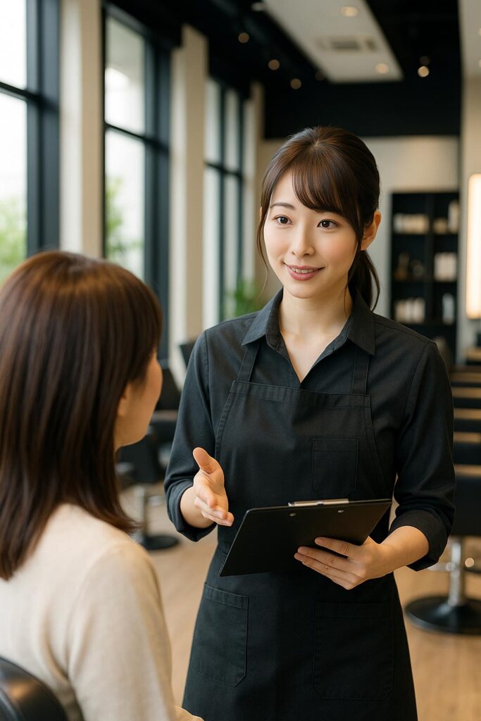 ライフスタイル・骨格・髪質・お悩みをしっかりヒアリング。画像の持ち込みも歓迎です。今日だけでなく数週間先まで扱いやすい“似合う”デザインをご提案し、仕上げのスタイリングやホームケアもお伝えします。
